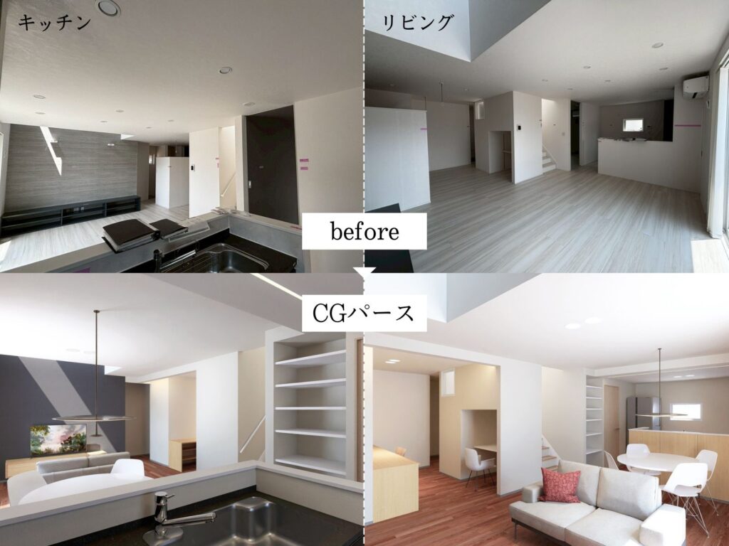 物件は築5年と、そのまま住める状態でしたが、所々使いづらいところ、新しい生活に合わないところなど、現状の負の解消を優先するように努めていきました。